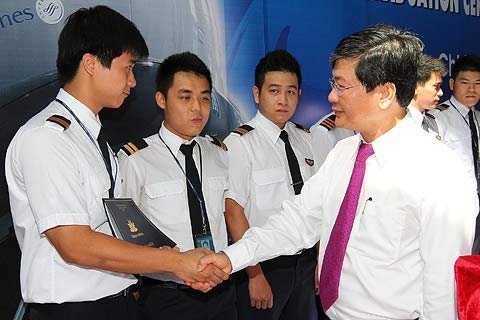 Ông Phạm Ngọc Minh, Tổng giám đốc VNA trao bằng tốt nghiệp cho các phi công cơ bản năm 2012. |