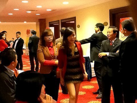 | Ông Lê Doãn Hợp (thứ 2 từ phải sang), Nguyên Bộ Trưởng Bộ TT-TT, Chủ tích Hội Truyền Thông Số VN gặp gỡ những cán bộ ngành ICT ở hành lang đêm GALA Xuân Quý Tỵ 2013. |