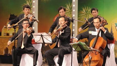 Những nông dân làng Then - Bắc Giang trình diễn violin trên sân khấu