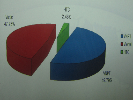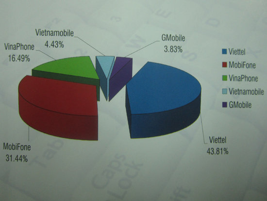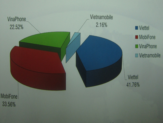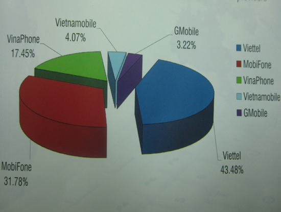 Trong đó, nếu xét riêng về thị phần (thuê bao) dịch vụ 2G, Viettel vẫn dẫn đầu, chiếm hơn 43,8%. Tương tự, đối với thị trường cung cấp dịch vụ di động 3G, số thuê bao di động 3G mạng Viettel chiếm trên 41,6% tổng số thuê bao di động 3G, trong khi thị phần dịch vụ 3G của MobiFone là hơn 33,5% và VinaPhone chiếm 22,5% thị phần.