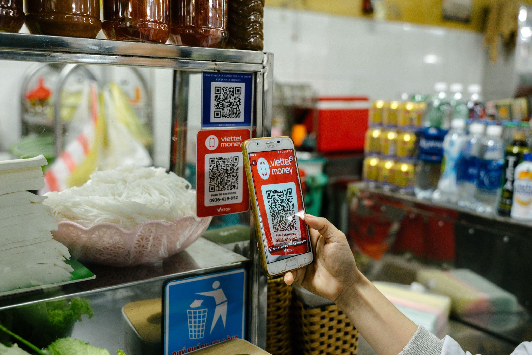Nổi bật là phương thức thanh toán bằng cách quét mã QR tại mạng lưới hàng trăm nghìn điểm chấp nhận thanh toán của Viettel Money và đối tác phủ khắp 63 tỉnh thành… Theo đó, chỉ với một chiếc điện thoại, vài thao tác đơn giản, người dùng có thể thực hiện các giao dịch có giá trị lớn nhỏ khác nhau nhanh chóng, dễ dàng sử dụng mọi lúc mọi nơi mà không cần phải ghi nhớ số tài khoản và cú pháp chuyển tiền. Mặt khác, hình thức thanh toán không chạm này giúp người dân thuận tiện hơn trong việc mua sắm mà không phải cầm quá nhiều tiền mặt, hạn chế được các tình trạng rơi tiền hay khó quản lý chi tiêu.