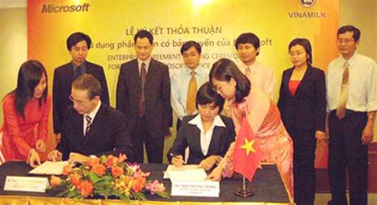 ICTnews - Sáng 21/12/2007, tại TP.HCM, Công ty CP sữa Việt Nam Vinamilk và Microsoft Việt Nam ký kết thỏa thuận trị giá khoảng 670.000 USD về hỗ trợ kỹ thuật và hợp pháp hóa phầm mềm tới năm 2010.