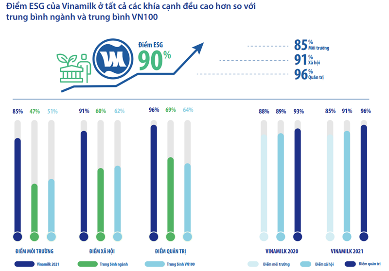 Tại Việt Nam, Vinamilk là doanh nghiệp nhận được sự đánh giá cao về phát triển bền vững với cả 3 khía cạnh ESG (Môi trường - E; Xã hội - S; Quản trị công ty - G). Từ năm 2012, Vinamilk đã bắt đầu công bố Báo cáo Phát triển Bền vững (PTBV) tham chiếu theo bộ tiêu chuẩn GRI Standards và Mục tiêu phát triển bền vững của Liên Hiệp Quốc (SDGs).