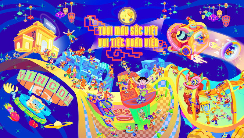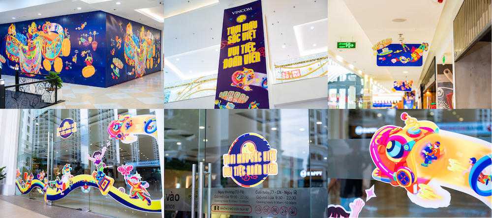 Vincom lần đầu tiên hợp tác cùng Đạo diễn Phương Vũ và Antiantiart mang đến không gian đón Trăng ấn tượng tại hệ thống 83 TTTM trên toàn quốc với tác phẩm “Tươi màu sắc Việt”. Các khách hàng khi đến trải nghiệm sẽ được tận hưởng không gian Tết đoàn viên với những chất liệu sáng tạo truyền thống đan cài đương đại, kết nối các thế hệ thành viên gia đình.