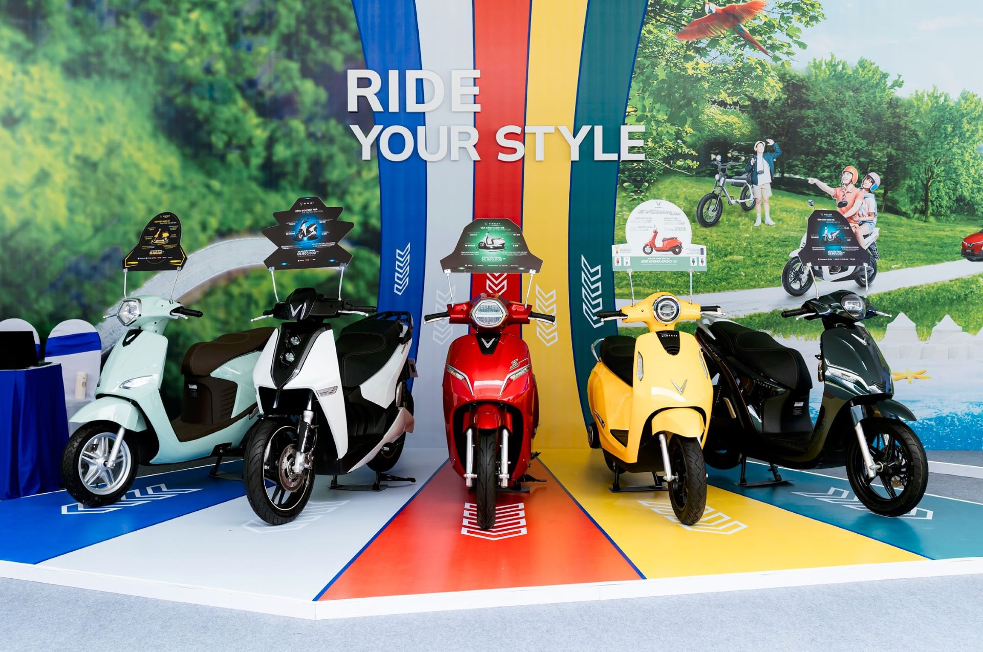 Điểm nhấn tại khu vực trưng bày của VinFast là mẫu ô tô điện “quốc dân” VinFast VF 5 Plus và 5 mẫu xe máy điện thời trang, phong cách. Đây là những dòng sản phẩm bán chạy nhất của VinFast nhờ sở hữu thiết kế bắt mắt, thời trang cùng nhiều tính năng an toàn, thông minh và mức giá phù hợp với số đông người tiêu dùng. Ngoài ra, bộ sưu tập phụ kiện thời trang do VinFast kết hợp cùng stylist Ben Phạm ra mắt, lấy cảm hứng từ xe VinFast VF 5 Plus, cũng lần đầu tiên được giới thiệu trong chuỗi sự kiện này.