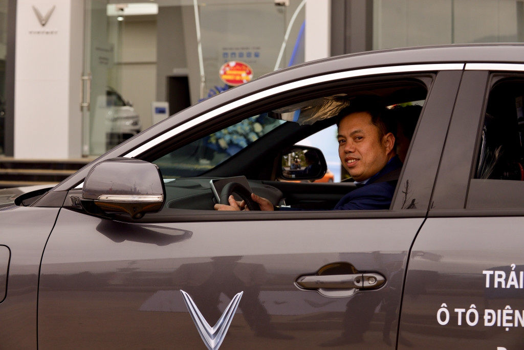 Tâm điểm của sự kiện là chương trình lái thử mẫu xe VF 8 với hàng trăm khách hàng lái thử ngay trong ngày đầu khai trương. Hai vợ chồng anh Ngô Chí Phong (huyện Tam Đường, tỉnh Lai Châu) đã lên đường từ sớm để lái thử mẫu xe điện toàn cầu của VinFast. Anh Phong thừa nhận đã sớm ấn tượng với vẻ ngoài của mẫu xe VF 8 khi thấy xe chạy trên tuyến đường hàng ngày di chuyển Hà Nội – Lai Châu. Anh không giấu được sự phấn khích với khả năng vận hành của mẫu xe này ngay trong lần đầu cầm lái.“Không có độ trễ dù chỉ một chút khi đạp ga, xe vào cua rất chắc chắn, vô lăng rất chính xác, cảm giác thật tay.”, anh Phong chia sẻ.