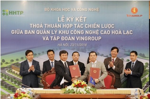 Theo tin từ Bộ Khoa học và Công nghệ, ngày 23/11/2018, tại trụ sở Bộ Khoa học và Công nghệ (KH&CN), Ban Quản lý Khu Công nghệ cao Hòa Lạc và Tập đoàn Vingroup đã ký Thỏa thuận hợp tác chiến lược trong việc đầu tư và phát triển Khu CNC Hòa Lạc. Tham dự buổi lễ ký kết có Bộ trưởng Bộ KH&CN Chu Ngọc Anh, Phó Chủ tịch Viện Hàn lâm KH&CN Việt Nam Phan Ngọc Minh.