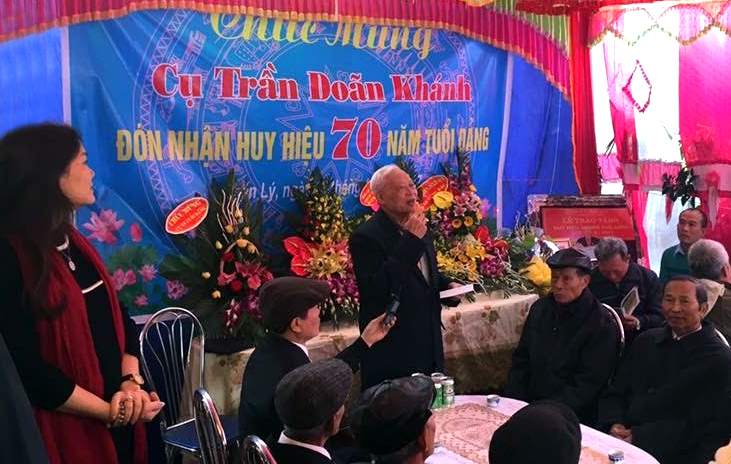| Huyện ủy Lý Nhân và Đảng bộ xã Chân Lý trang trọng tổ chức Lễ mừng Huy hiệu 70 năm tuổi Đảng cho đảng viên Trần Doãn Khánh. |