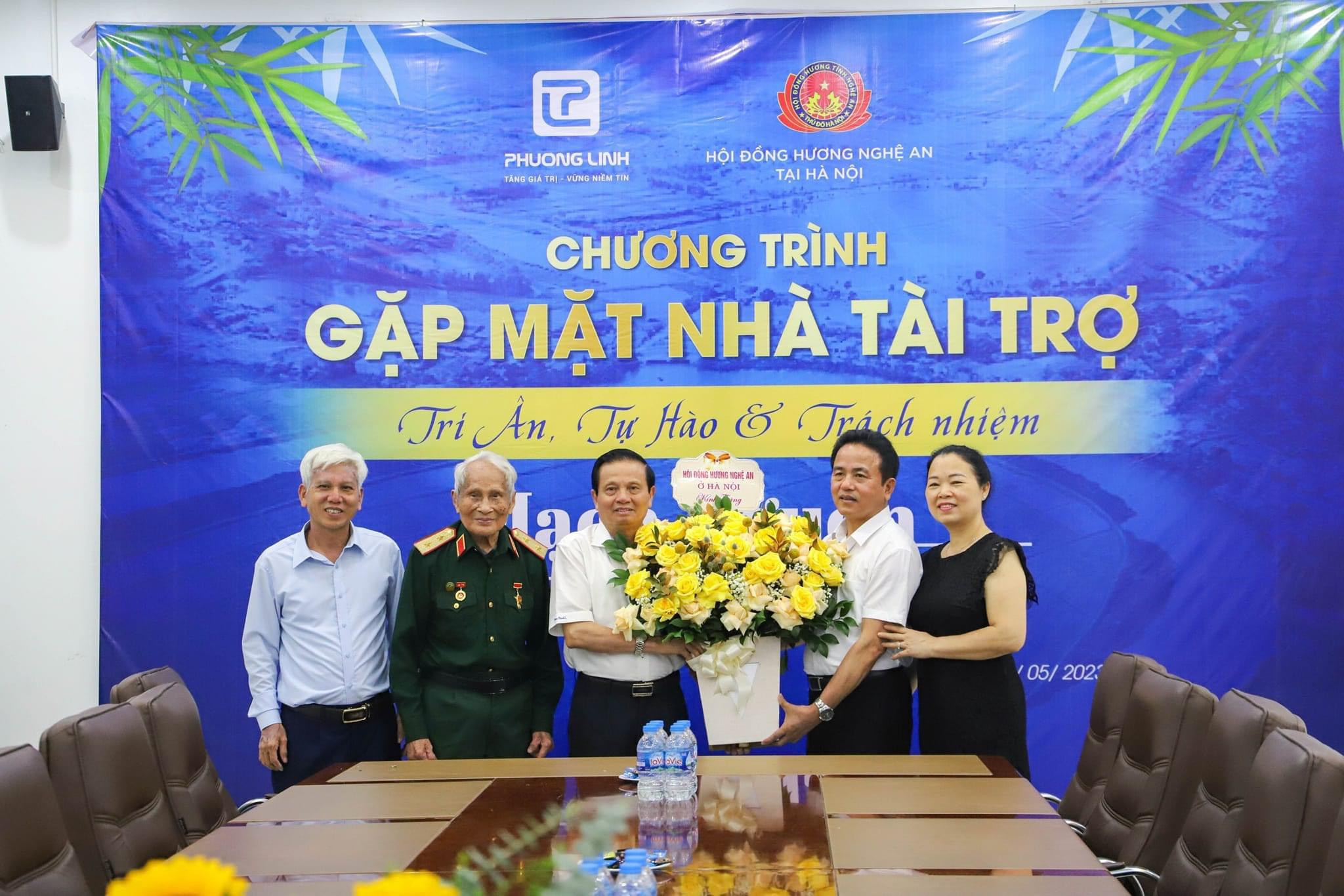 Ông Lê Doãn Hợp - Chủ tịch Hội đồng hương Nghệ An tại Hà Nội gặp mặt tri ân nhà tài trợ.