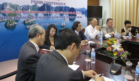 | Buổi họp báo công bố chính thức Vịnh Hạ Long trở thành kỹ quan thiên nhiên mới của thế giới diễn ra sau hơn 4 tháng kết thúc cuộc bầu chọn. |