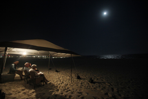Mọi người cùng cầu nguyện trong một buổi sáng sớm để tưởng niệm 1 năm xảy ra thảm họa tràn dầu ở Vịnh Mexico ở bãi biển Orange, Alabama vào ngày 20/04/2011.