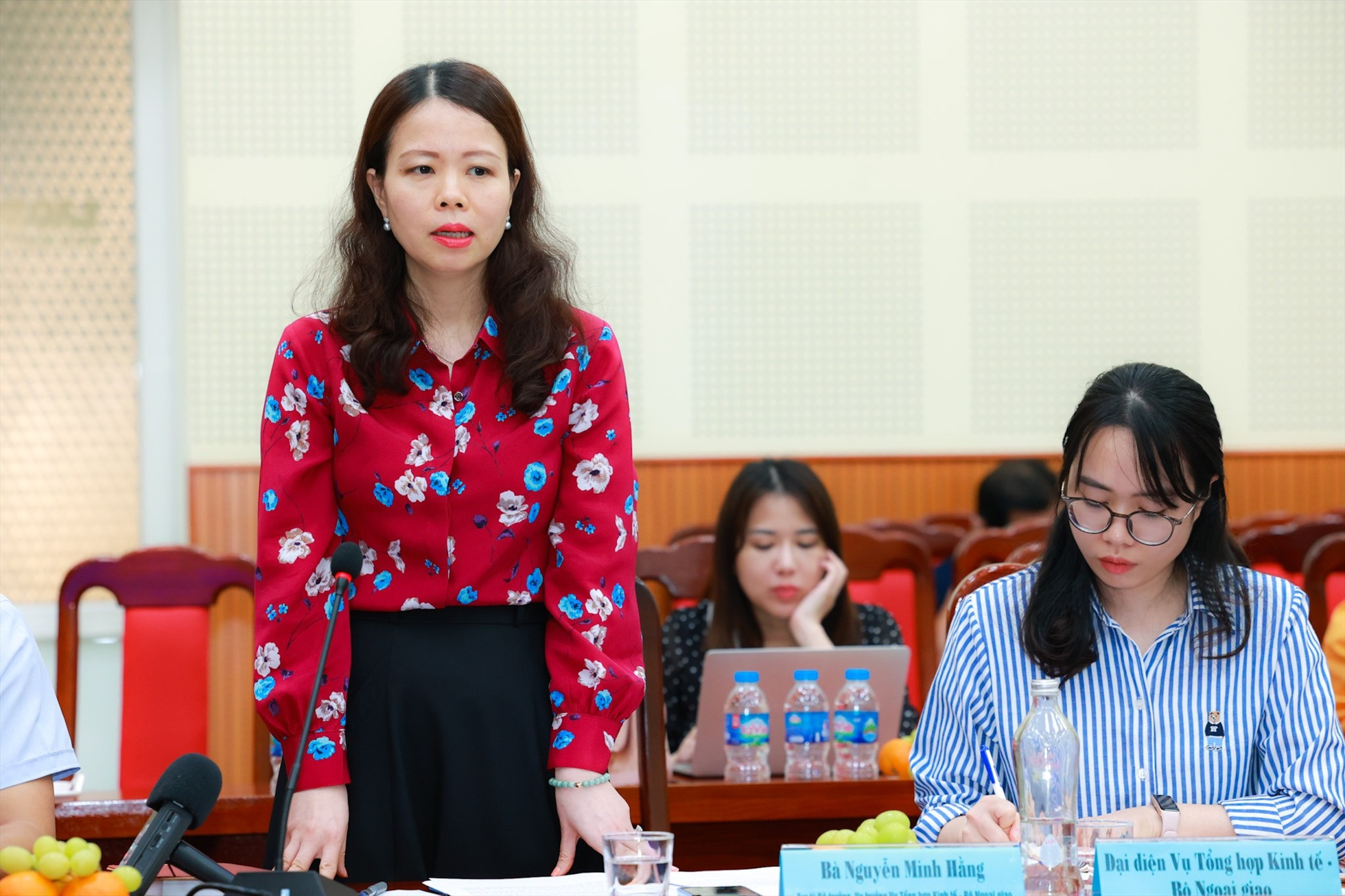 Bà Nguyễn Minh Hằng, Vụ trưởng Vụ Tổng hợp Kinh tế (Bộ Ngoại giao) bày tỏ sự vinh dự, tự hào khi Vụ Tổng hợp Kinh tế là 1 trong 5 tập thể được vinh danh tại chương trình năm nay.