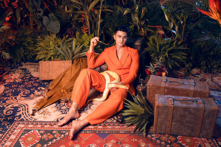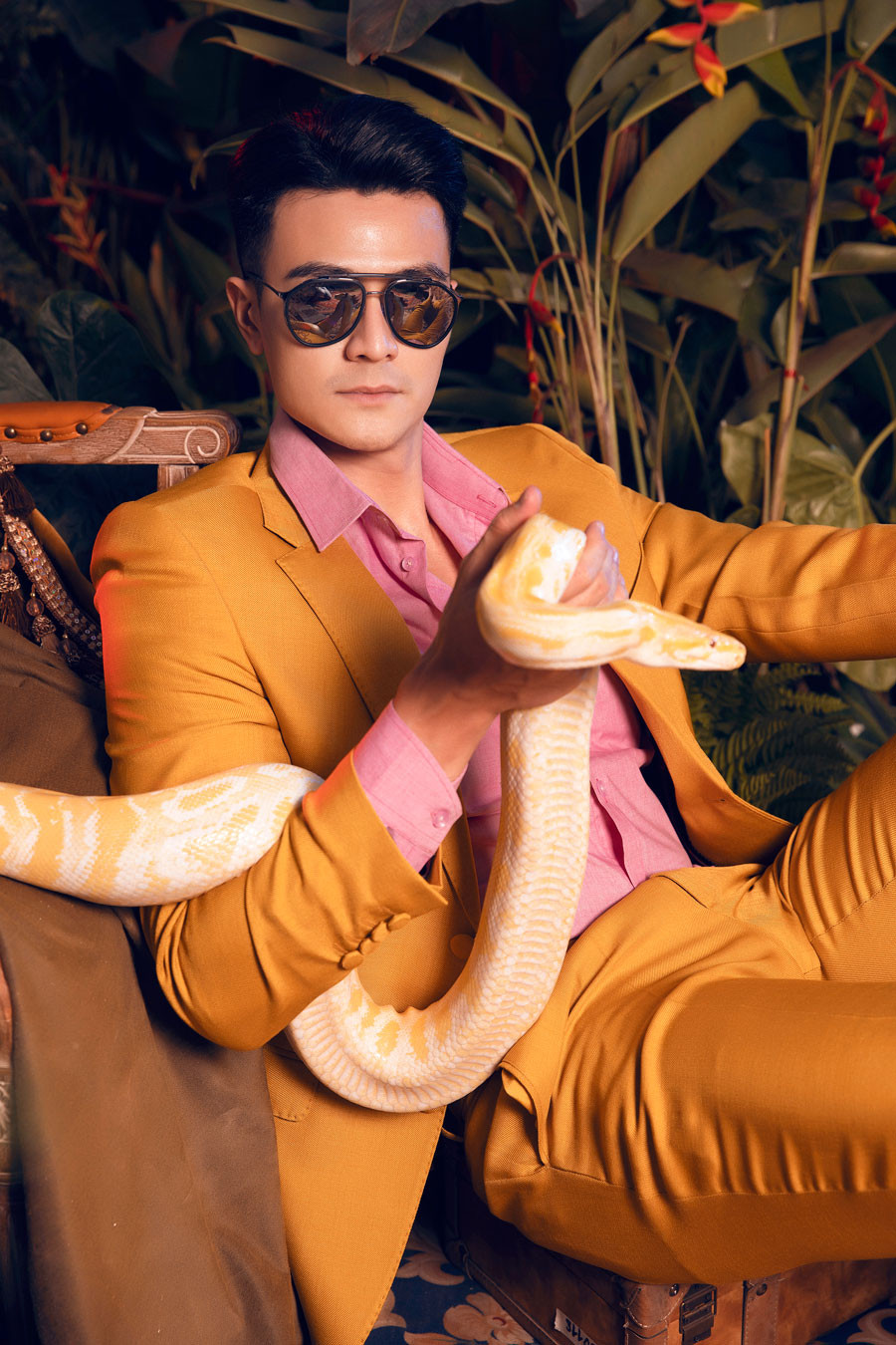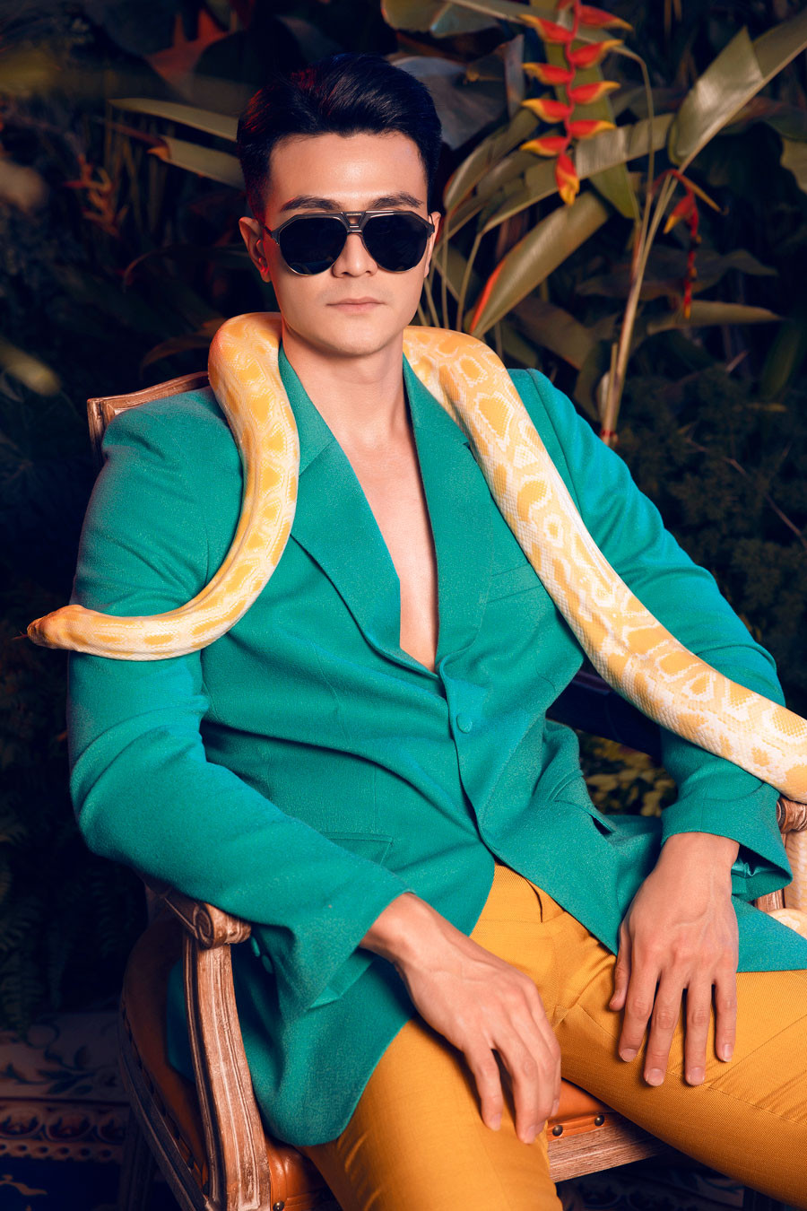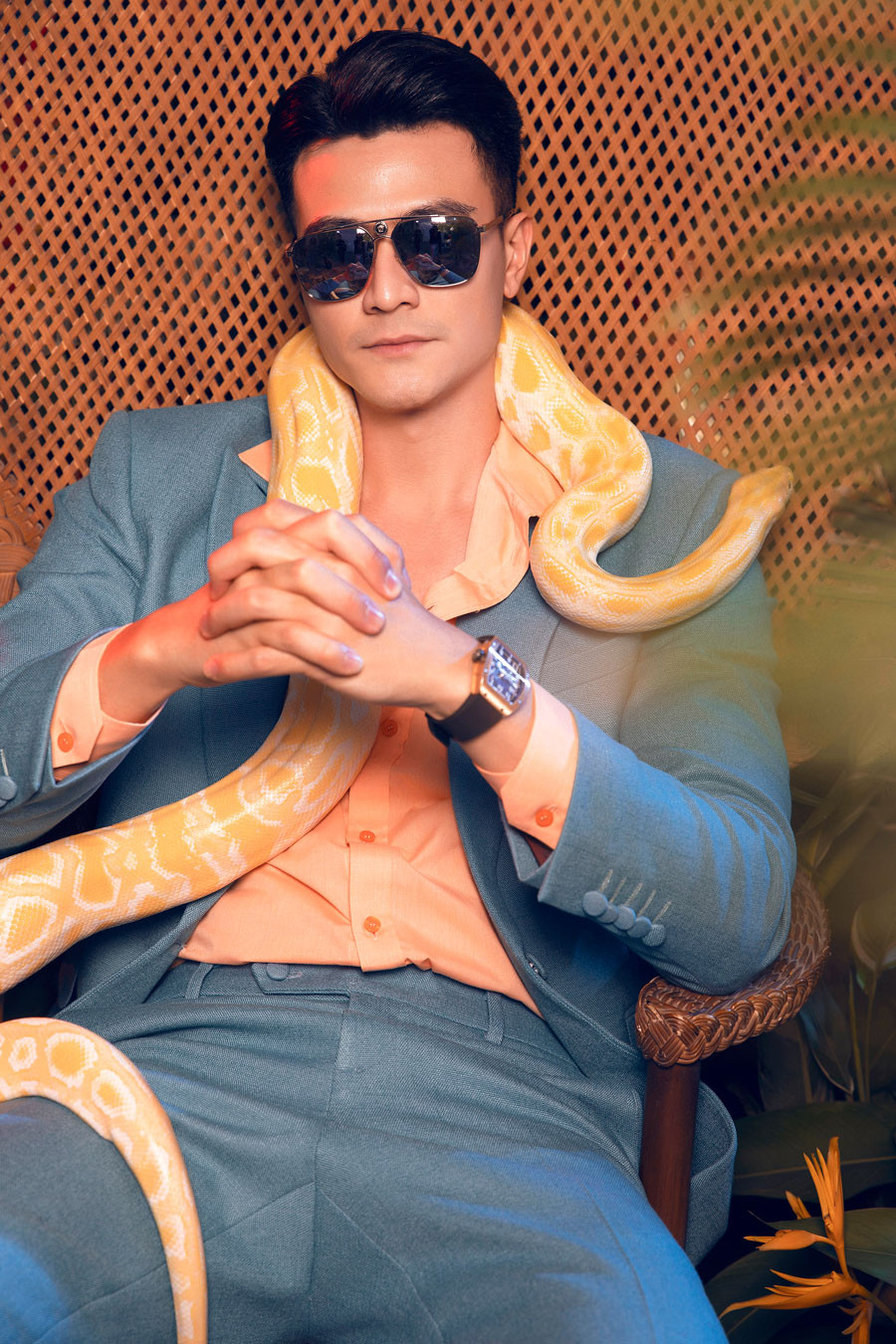 Làm mẫu cho bộ sưu tập mang tên "Tropical Garden" , Vĩnh Thụy xuất hiện nổi bật trong những bộ suit đậm tinh thần nhiệt đới. "Bạn diễn" của chàng siêu mẫu là một con trăn kích thước lớn. Vĩnh Thụy cho biết anh cảm thấy hoàn toàn thoải mái khi chụp với loài vật này.Khoác lên mình những bộ suit màu sắc, Vĩnh Thụy khẳng định dấu ấn riêng bằng cách kết hợp với sơ mi nổi bật không kém. Có lúc anh bỏ ngỏ áo trong, để lộ khoảng hở chừng mực như một điểm nhấn quyến rũ cho tổng thể. Không giới hạn trong những tone nền nã quen thuộc, bộ sưu tập "Tropical Garden" gồm các mẫu suit rực rỡ sắc màu giúp Vĩnh Thuỵ trở thành tâm điểm của mọi ánh nhìn.Vĩnh Thụy sinh năm 1988, bén duyên nghề mẫu từ tuổi teen và nhanh chóng nổi tiếng nhờ gương mặt điển trai, vóc dáng chuẩn.Anh thường giữ vị trí vedette khi tham gia các show thời trang, đồng thời được nhiều nhãn hàng săn đón.Bên cạnh hoạt động showbiz, gần đây Vĩnh Thụy còn lấn sân lĩnh vực NFT và kinh doanh.