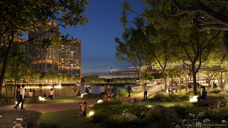 Theo đơn vị phát triển dự án, toàn bộ cảnh quan với gần 13 ha cây xanh và tiện ích công cộng của dự án đang được ưu tiên thi công để hoàn thành trong quý I/2023. Trong đó vịnh tình yêu và khu nhạc nước dự kiến sẽ được hoàn thiện và đi vào hoạt động từ quý IV/2022.