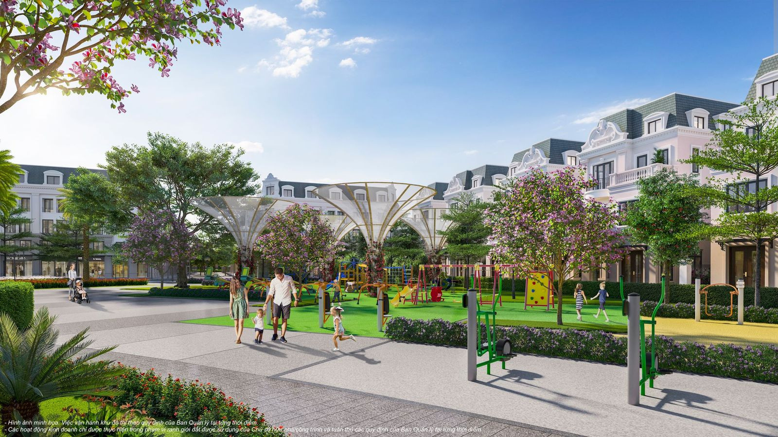 Hệ cảnh quan, tiện ích như vườn hoa, quảng trường, hồ nước, bể bơi, tiểu cảnh, sân tập thể thao, vườn thượng uyển… cũng được gấp rút xây dựng, nhằm đưa các công trình tiện ích vào hoạt động trước khi giao chìa khóa cho người mua. Các hạng mục tại phân khu Paris, Tokyo, New York đang thi công đặt chờ hệ thống xả thải, cấp thoát nước, điện chiếu sáng, cống ngầm… Phần trục đường chính dẫn khách hàng vào dự án cũng được trải nhựa, với phần vỉa hè được quy hoạch xây vuông vắn, rộng rãi.