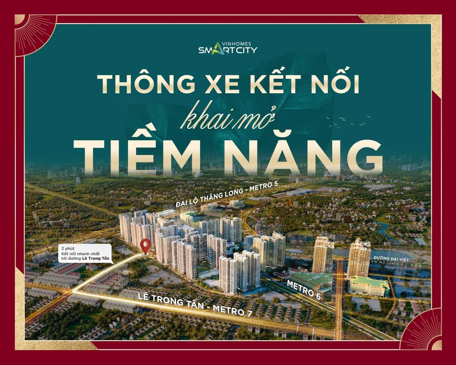 Đặc biệt mới đây, tuyến đường nối giữa Vinhomes Smart City và đường Lê Trọng Tấn kéo dài cũng đã được khai thông, củng cố tiềm năng “siêu kết nối” của đại đô thị khi mọi ngả đường đều dẫn về Vinhomes Smart City. Việc khai mở tuyến đường huyết mạch mang lại cho cư dân khả năng di chuyển nhanh chóng, thuận tiện hơn, góp phần giúp căn hộ tại đại đô thị thiết lập một mặt bằng giá mới, bao gồm cho thuê và giá trị tài sản, mang lại lợi nhuận cho chủ sở hữu.
