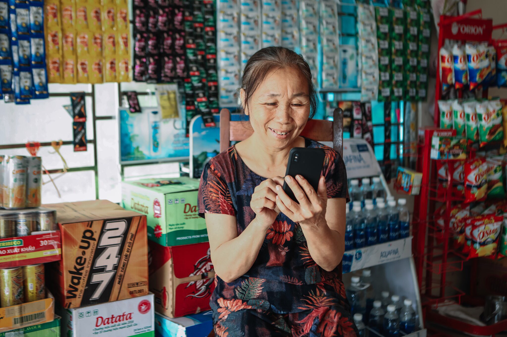 Ở tuổi 63, bà Chuyên lần đầu sử dụng smartphone để tham gia vào một quy trình hiện đại từ VinShop (nền tảng công nghệ thuộc Tập đoàn One Mount): Lựa chọn hàng hoá phù hợp với tiệm của mình từ 4.000 mặt hàng trên ứng dụng chỉ qua vài thao tác, hàng sẽ được giao trong chuyến xe tải duy nhất. Thông qua VinShop, hàng hóa từ nhà sản xuất tới thẳng từng tiệm bán lẻ trong từng hang cùng ngõ hẻm, được tính toán bằng dữ liệu để tối ưu hành trình và chi phí. So với việc nhập hàng qua hàng trăm đầu mối khác, VinShop không khác gì “một cuộc cách mạng” đối với vận hành của cửa hàng tạp hoá.