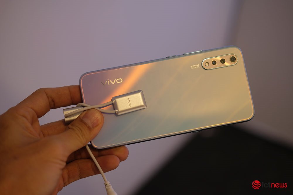 Vivo S1 được tích hợp cảm biến vân tay dưới màn hình, với tốc độ nhận diện chỉ khoảng 0,42s. Máy có hai màu xanh ngọc và đen.