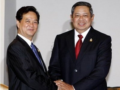 | Tổng thống Indonesia Susilo Bambang Yudhoyono tiếp Thủ tướng Nguyễn Tấn Dũng bên lề Hội nghị cấp cao ASEAN lần thứ 18 tại Jakarta tháng 5/2011. Ảnh: TTXVN |