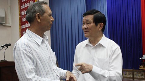 "Sắp tới, ban soạn thảo Luật biểu tình sẽ tổ chức lấy ý kiến của cử tri. Đến lúc đó, chúng tôi mong cô bác thẳng thắn góp ý, để hoàn thiện luật trước khi áp dụng vào cuộc sống" - Chủ tịch nước nói.