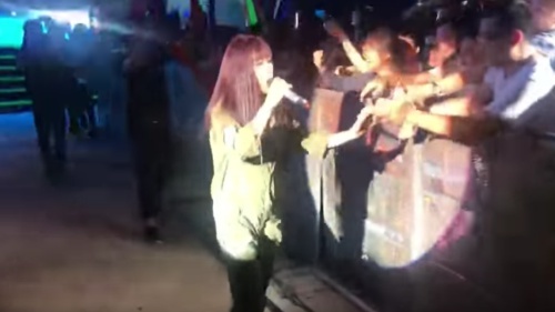 Tối 27/4, giọng ca ‘Giã từ dĩ vãng’ đã có buổi biểu diễn tại Thành phố Hồ Chí Minh. Trước sự hâm mộ cuồng nhiệt khán giả, nữ ca sĩ đã thể hiện hết mình, khuấy động sân khấu bằng những vũ điệu bốc lửa. Cùng với đó, cô hướng về phía khán giả hét lớn “Cho xin chai nước”.