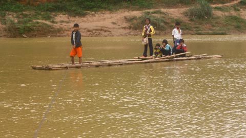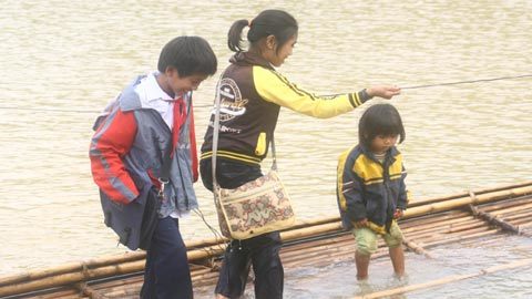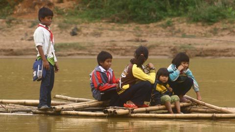Mỗi khi đến mùa mưa lũ, các em học sinh phải nghỉ học cả tháng trời do sông lớn, không thể chèo bè qua được.