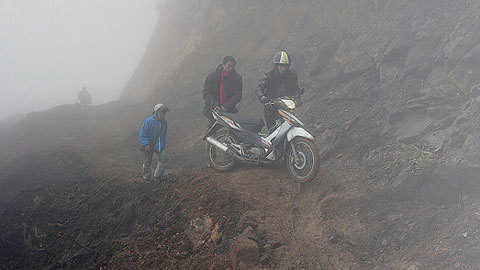 | Đường vào Trường tiểu học Hồng Ngài qua cả chục km lầy lội và sạt lở quanh năm |