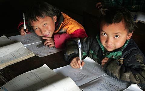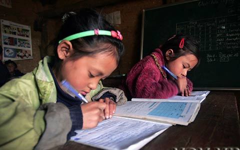 | Lớp học này có một nửa học lớp 5, nửa kia là lớp 1 |