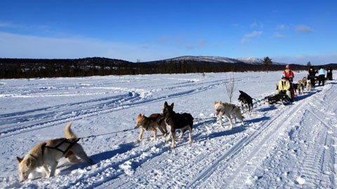 Đi xe chó kéo ở Na-uy, thuộc vòng Bắc cực. |