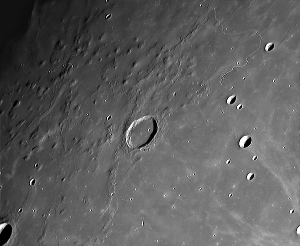 Lỗ thủng có tên Hills Marius (giữa ảnh) trên bề mặt Mặt trăng. |
