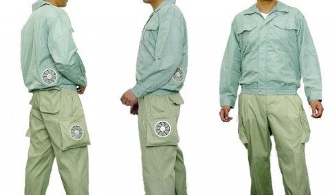 Công ty Kuchofuku của Nhật Bản vừa giới thiệu sản phẩm quần có gắn thiết bị điều hòa nhiệt độ Air-Conditioned Cooling. Chiếc quần này được gắn 2 chiếc quạt chạy bằng pin giúp lưu thông không khí làm mát phần chân của người mặc.