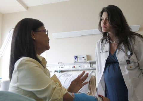 Tiến sĩ Sarah K. Browne (phải) đang trò chuyện với một bệnh nhân mắc căn bệnh lạ giống AIDS ngày 22/8. Ảnh: AP |