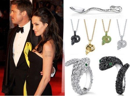 Hai diễn viên hàng đầu Hollywood đã cho ra mắt bộ sưu tập mang tên vật bảo hộ. Bộ sưu tập gồm từ trang sức như khuyên tai, nhẫn, vòng tay cho đến những vật dụng gia đình như chén thìa… tất cả đều được chạm khắc hình ảnh rắn, con vật thiêng liêng của năm mới và làm từ các chất liệu quý: vàng, bạc, kim cương.