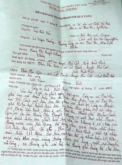 | Biên bản bắt quả tang cơ sở sản xuất nước mắm giả nhãn hiệu Út Hiền |