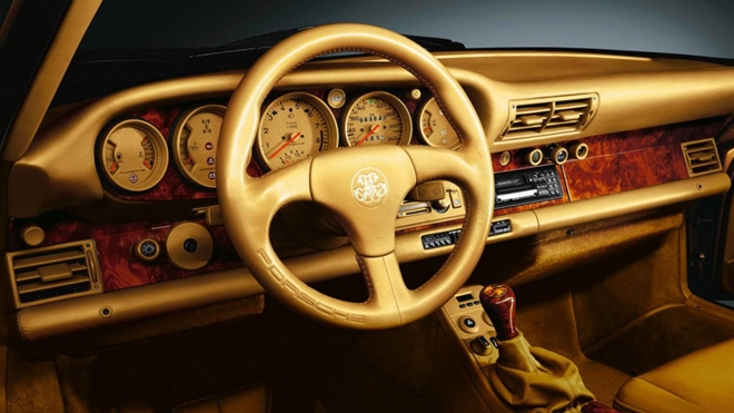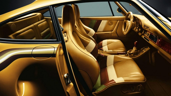 Nội thất trên chiếc Porsche 959 màu vàng. |