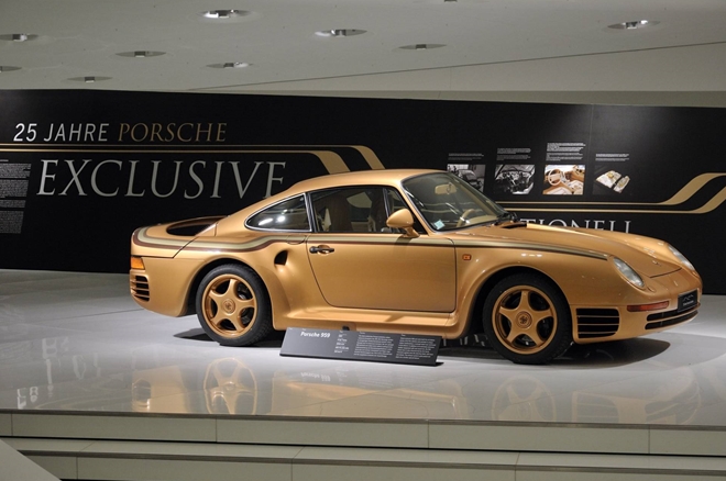 Vào năm 2011, Porsche Exclusive đã kỷ niệm 25 năm thành lập và được sự cho phép của chủ sở hữu đã để chiếc xe màu vàng - 1 trong 7 chiếc 959 kể trên - tại Bảo tàng Porsche như một phần của cuộc triển lãm đặc biệt. Chiếc xe màu vàng với nhiều chi tiết được mạ vàng thật này cho thấy sự xa xỉ và quyền quý của Hoàng gia Qatar.