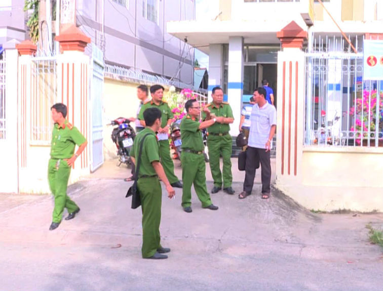 | Công an khám nghiệm hiện trường vụ cướp ngân hàng ở Vĩnh Long |