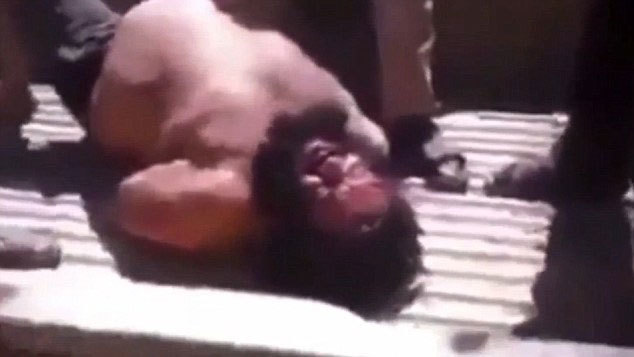 Trong video, tên đao phủ khổng lồ này, nặng 128kg, cởi trần đang nằm phía sau một chiếc xe tải, hai tay bị trói ở đằng sau. Vây quanh chiếc xe là nhiều nam giới có vũ trang.