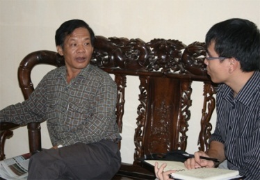 Ông Trần Văn Tiện (trái) lý giải về tấm bằng giả (Nguồn: GĐ&XH) |