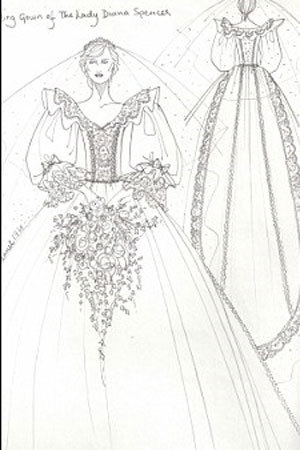 | Bản phác thảo váy cưới tuyệt đẹp của công nương Diana (Ảnh: Daily Mail) |