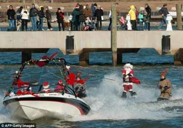 7. Thay vì đi xe trượt tuyết do tuần lộc kéo, các ông già Noel tại Mỹ đi trao quà bằng thuyền.