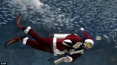 10. Hàn Quốc: Nhiều người đặt câu hỏi không biết ông già Noel này lặn xuống nước để làm gì?