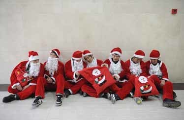 9. Các ông già Noel nghỉ ngơi tại một trung tâm mua sắm ở Hợp Phì, An Huy, Trung Quốc.