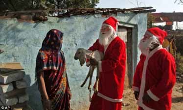 12. Ông già Noel đến trao quà cho một người dân sống trong khu nhà ổ chuộc ở Allahabad, Ấn Độ