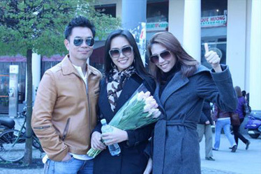 Benny Ng. bên cạnh Mai Phương Thúy và Võ Hoàng Yến trong chuyến thăm một
