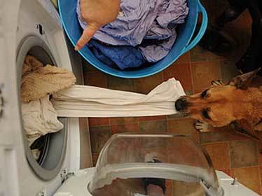 Chú chó Sandie cũng biết phân biệt quần áo trắng và quần áo màu trước khi cho vào máy giặt, bỏ bột giặt và ấn nút khởi động. Sandie cũng biết ngậm bát đĩa thả vào máy rửa bát và bấm nút. Thậm chí, Sandie còn biết cầm tiền đi siêu thị, đưa tờ giấy ghi những thứ cần mua cho người bán và mang thức ăn về.