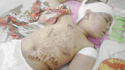 | Bé Lê Quang Vinh bị thương tích nặng nề. (Ảnh: VietNamNet) |