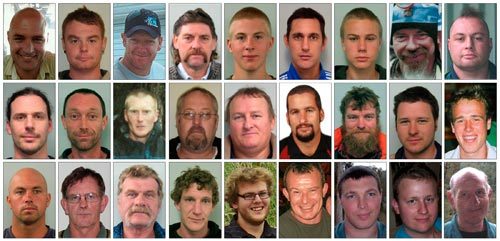 | Chân dung của 27 trong số 29 thợ mỏ mắc kẹt trong mỏ than Pike River (Ảnh: REUTERS) |