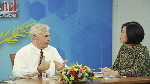 Trước đó, ngay từ 11h hôm nay, ngày 9/11, hai học giả, chuyên gia nghiên cứu nổi tiếng về chính trị ngoại giao, GS Terry Buss, nguyên Hiệu trưởng Trường Chính sách công, ĐH Carnegie Mellon, thành viên Hội đồng Hành chính Quốc gia và ông Vũ Tú Thành, Phó Giám đốc Điều hành khu vực ASEAN, Hội đồng Kinh doanh Mỹ - ASEAN đã có mặt tại trường quay của báo điện tử VietNamNet.