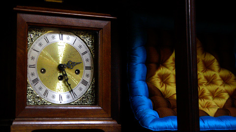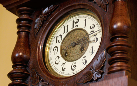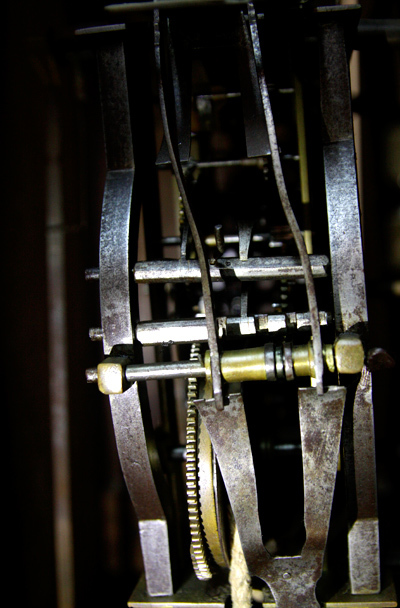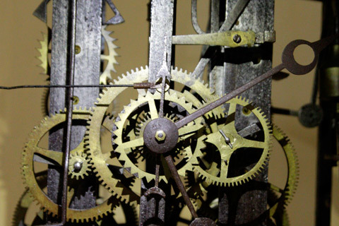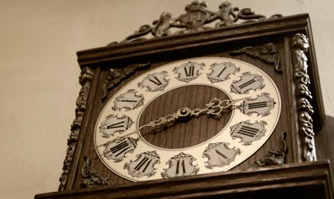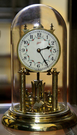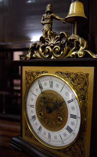 Những cỗ máy thời gian bên trong những chiếc tủ cũng là một công trình nghệ thuật. Trong số này đáng chú ý có chiếc đồng hồ tủ đứng bằng gỗ sồi hiệu Amuf của Đức. Chiếc đồng hồ này sản xuất từ thập niên 40 của thế kỷ trước, đánh nhạc Westminster, 8 gông thép, máy chạy tạ xích.